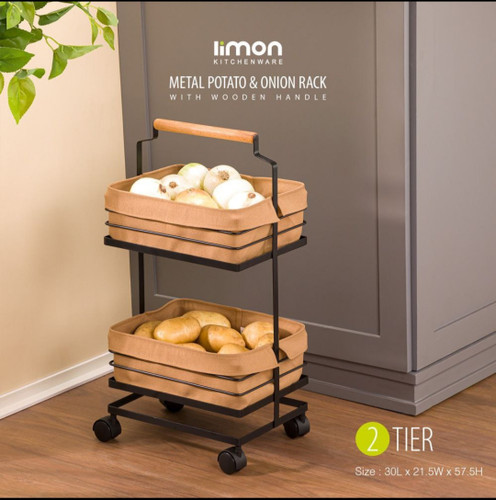 جا سیب زمینی پیاز 2طبقه فلزی دسته چوب لیمون (2324)