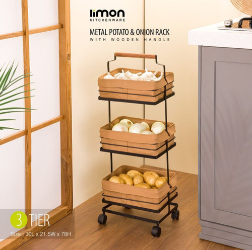 جا سیب زمینی پیاز 3طبقه فلزی دسته چوب لیمون (2323)
