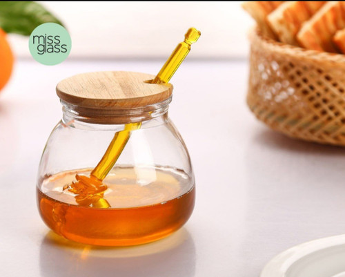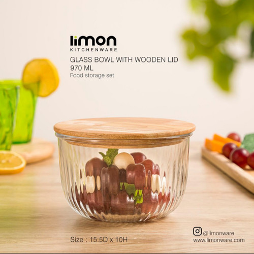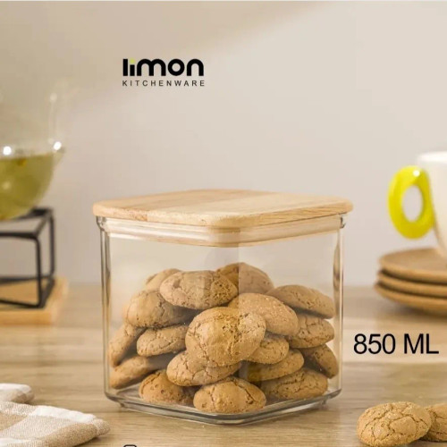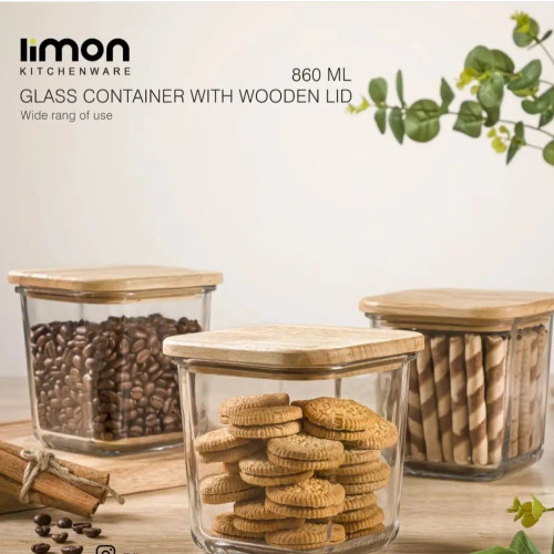ظرف شیشه ای ۸۶۰ میل درب چوب (لیمون) ۲۱۸۹