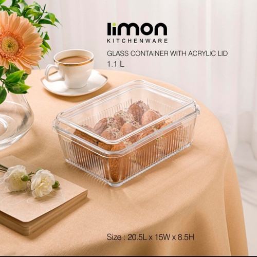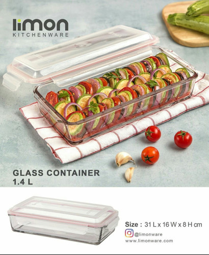 ظرف شیشه ای مستطیل دربدار ۱،۴ لیتر (لیمون) ۲۰۵۰