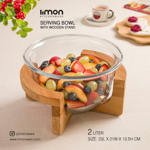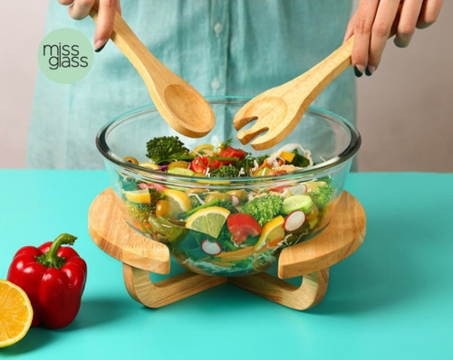 کاسه سالاد سرو پایه چوبی (میس گلس)