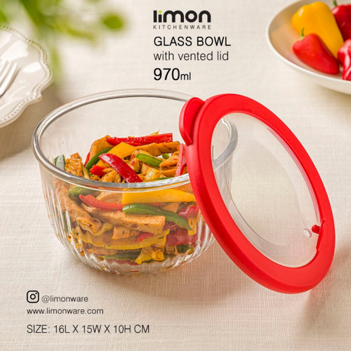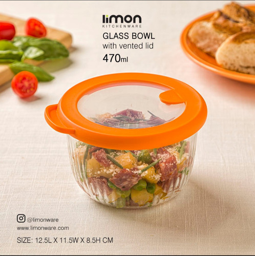کاسه گرد شیشه ای دربدار شیاردار ۴۷۰ میل(لیمون) ۲۲۲۱
