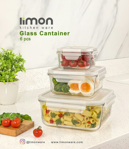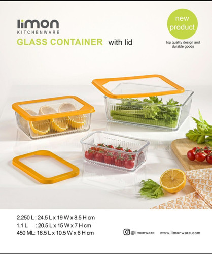 ست ظرف شیشه ای ۳تیکه مربع (لیمون) ۲۰۴۸