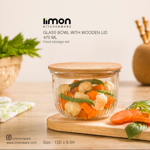 کاسه گرد شیار دار ۴۷۰ میل درب چوبی (لیمون) ۲۱۷۵