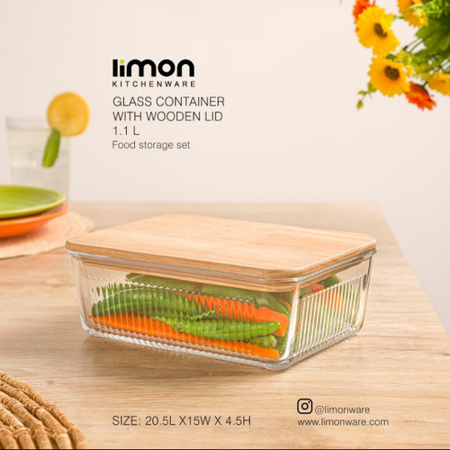 ظرف شیشه ای مستطبل شیاردار ۱.۱ لیتر درب چوبی(لیمون) ۲۱۹۱