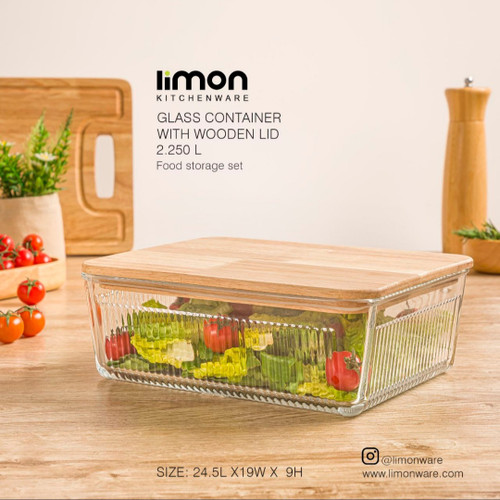 ظرف شیشه ای مستطیل شیاردار ۲/۲۵ لیتر در چوبی (لیمون) ۲۱۹۲