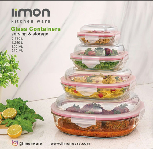 ست ظرف شیشه ای دربدار مستطیل شیار دار (لیمون) ۲۱۰۰