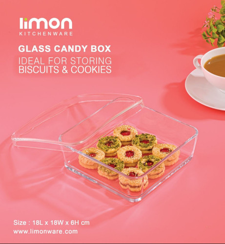 بیسکوییت خوری مربع شیشه ای درب شیشه (لیمون) ۲۱۵۴
