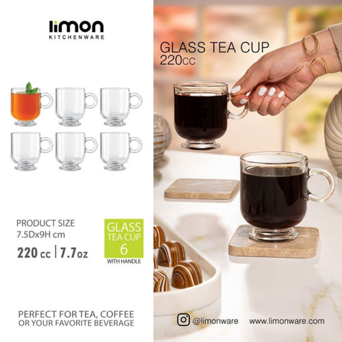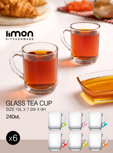 لیوان دسته دار ۶ عددی شیشه ای ۲۴۰ میلی (لیمون) ۲۳۸۸