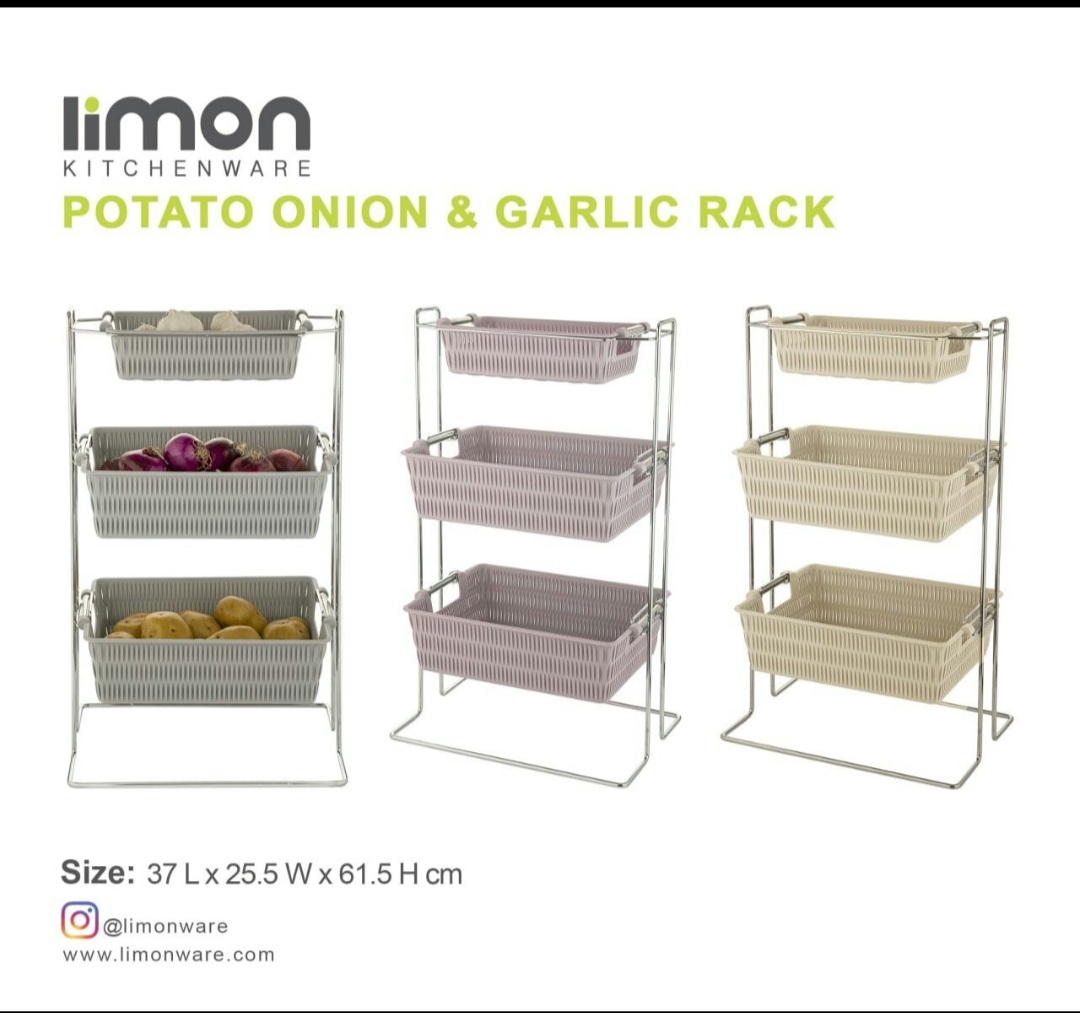جا سیب زمینی پیاز 3طبقه فلزی دسته چوب لیمون (2323)