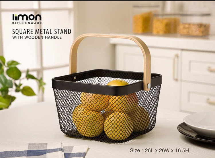 سبد فلزی مربع دسته چوبی لیمون(۲۳۲۱)